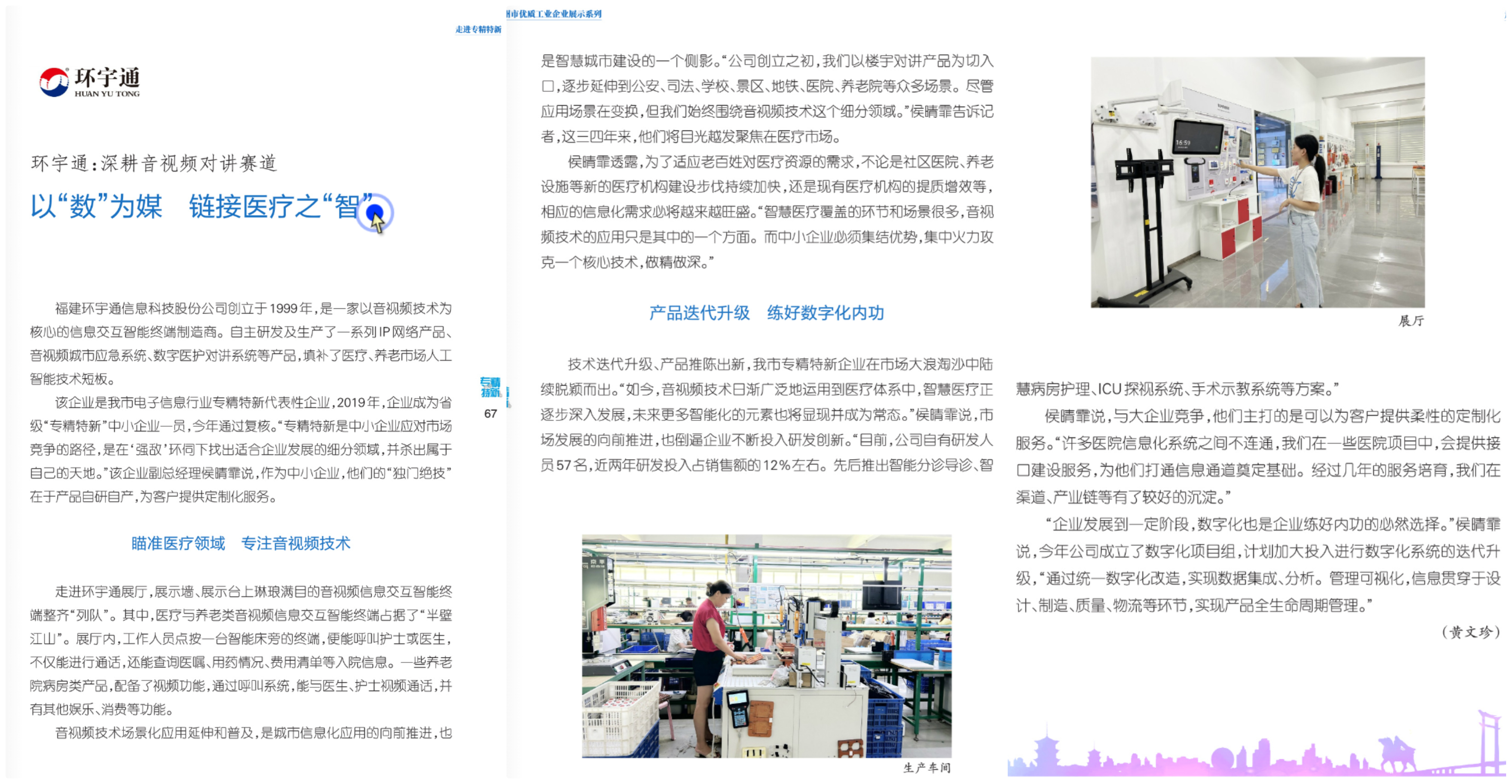 福建環(huán)宇通信息科技股份公司創(chuàng)立于1999年,是一家以音視頻技術(shù)為核心的信息交互智能終端制造商。自主研發(fā)及生產(chǎn)了一系列IP網(wǎng)絡(luò)產(chǎn)品、音視頻城市應(yīng)急系統(tǒng)、數(shù)字醫(yī)護(hù)對講系統(tǒng)等產(chǎn)品,填補(bǔ)了醫(yī)療、養(yǎng)老市場人工智能技術(shù)短板。